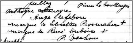 Pierre Leboulanger, sieur de St.Pierre, est le témoin d’Anthoyne qui signe au contrat de mariage. C’est lui qui à nouveau signe comme témoin le lendemain l’acte de mariage à l’église du Cap. Il est désigné comme marchand bourgeois et selon le recensement de 1681, il possédait alors 6 bêtes à cornes, 12 moutons et une terre de 60 arpents en valeur. Michel Langlois rapporte dans son article sur Anthoyne Cottenoyre qu’il lui devait en 1690 la rondelette somme de « 1013 livres et 1 sol ».