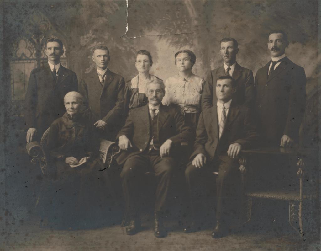 La photo suivante, prise à Montréal (ou à Sorel) vers la fin des années 1920, nous montre à nouveau Élisabeth Letendre en première rangée. Elle est alors âgée de plus de 70 ans. Lors du recensement de 1921, elle habitait Manseau (ou St.Joseph-de-Blandford) chez son fils Henri. Elle y décèdera en 1933 à l’âge de 83 ans. Au centre, l’aîné, mon grand-père Joseph.