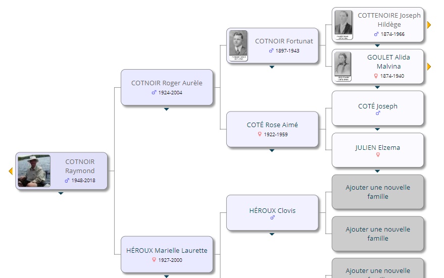 Raymond Cotnoir (1948-2018) est l’arrière-petit-fils de Joseph Hildège Cottenoir (1874-1966) et de Alida Malvina Goulet.